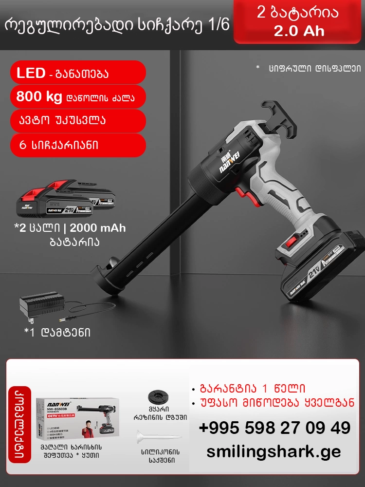 სილიკონის ელექტრო ფისტოლეტი Nanwei 21V 580,00 ₾ Original price was: 580,00 ₾.390,00 ₾Current price is: 390,00 ₾.